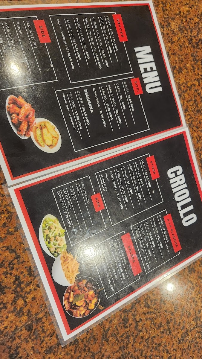 Lekker Restaurant’s menu at Noord 39, Noord, Aruba feels curated for diners who want bold, comforting flavors with a clear local touch. The highlights immediately set the tone: Oxtail stands out as the kind of slow-cooked, deeply savory dish that anchors the menu with richness and warmth, while Oyster Soup brings a more delicate, briny counterpoint that still reads as indulgent and satisfying. If you’re leaning toward something brighter and more aromatic, Garlic Shrimp delivers that crowd-pleasing combination of seafood sweetness and punchy garlic, making it an easy choice for anyone who wants flavor without heaviness. For a heartier, more familiar comfort-plate, Kip Met CS rounds out the selection with an approachable, filling option that fits well alongside the restaurant’s more seafood-forward offerings. To keep the experience relaxed and social, Cervecita complements the food side perfectly, adding a casual, refreshing note that pairs naturally with both the rich and lighter dishes. Taken together, these standout items give the menu a clear identity: satisfying portions, distinct flavors, and a balance between hearty classics and ocean-inspired options, making it easy to build a meal that feels complete without being overwhelming.